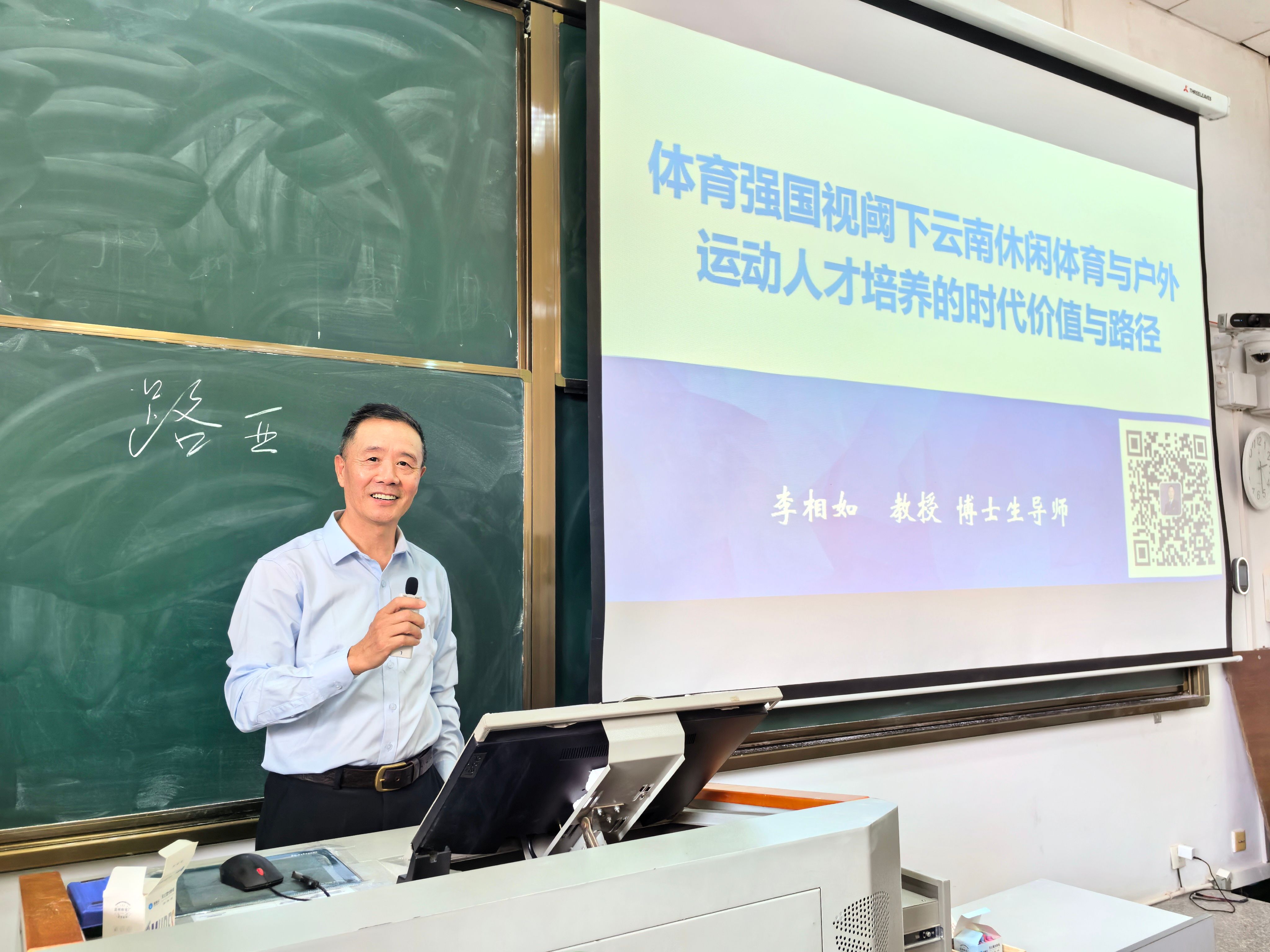 李相如教授在报告中紧紧围绕讲座主题,全面梳理国内外休闲体育与户外运动的发展进程、深度解读我国与此相关政策及时代价值。在此基础上,重点分析了目前云南发展休闲体育与山地户外运动的潜力优势和专业人才培养的重要意义,并提出了一些可行性建议。在互动环节,与会师生就当前休闲体育与户外运动的发展前景及云南人才培养展开了热烈而深入的交流。李相如教授耐心细致地解答了大家提出的问题,分享了其团队的最新研究成果,鼓励学院师生积极投身于相关领域的研究与实践。