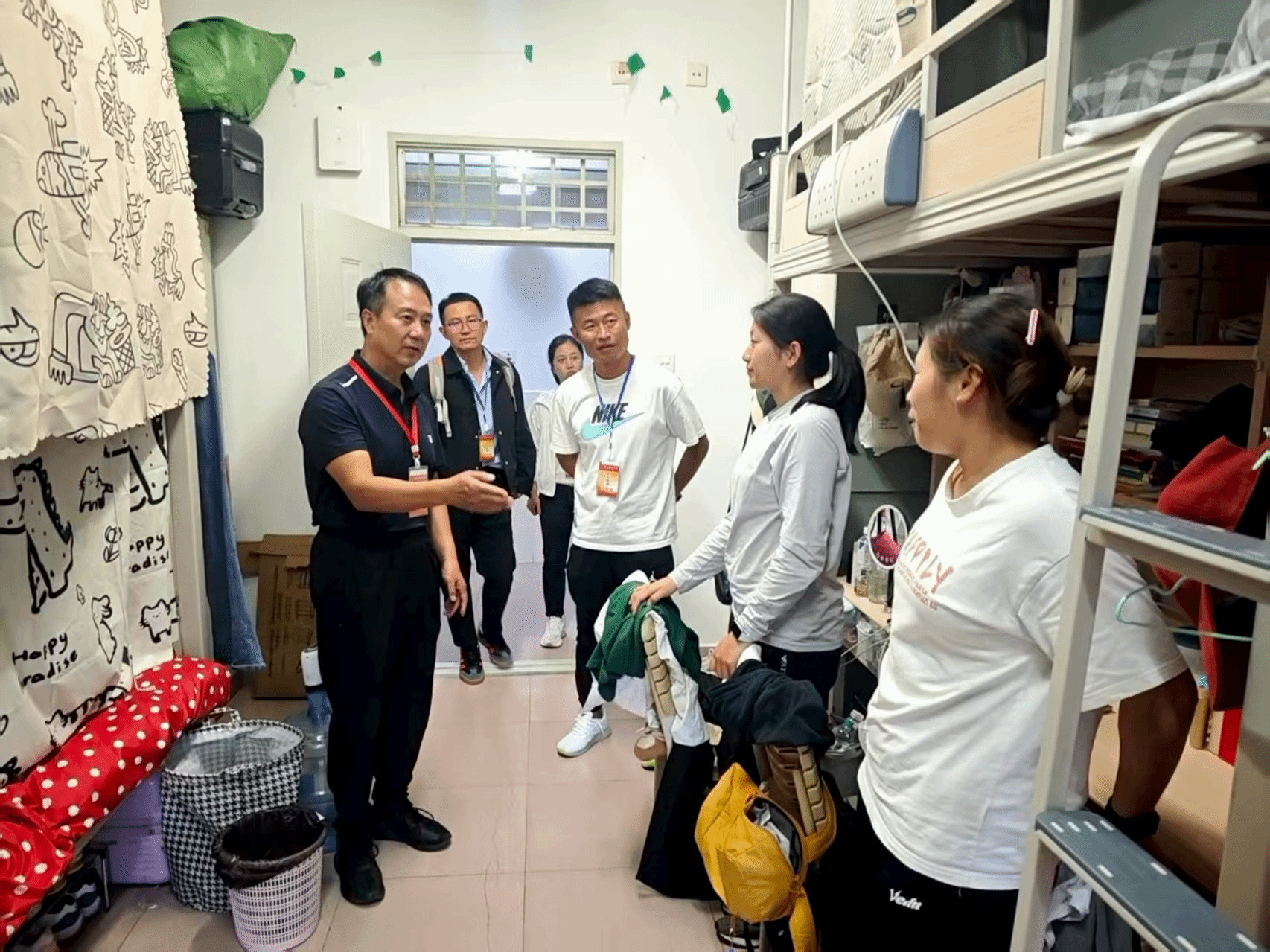 为帮助新生尽快适应大学生活,2025年8月27日,西南林业大学体育学院组织开展走访2025级新生宿舍活动。学院党委书记王坦、院长冯强、副院长陈涛、党委副书记锁中原、辅导员及新生班主任一同前往学生宿舍,为刚入校的新生送去温暖与关怀。