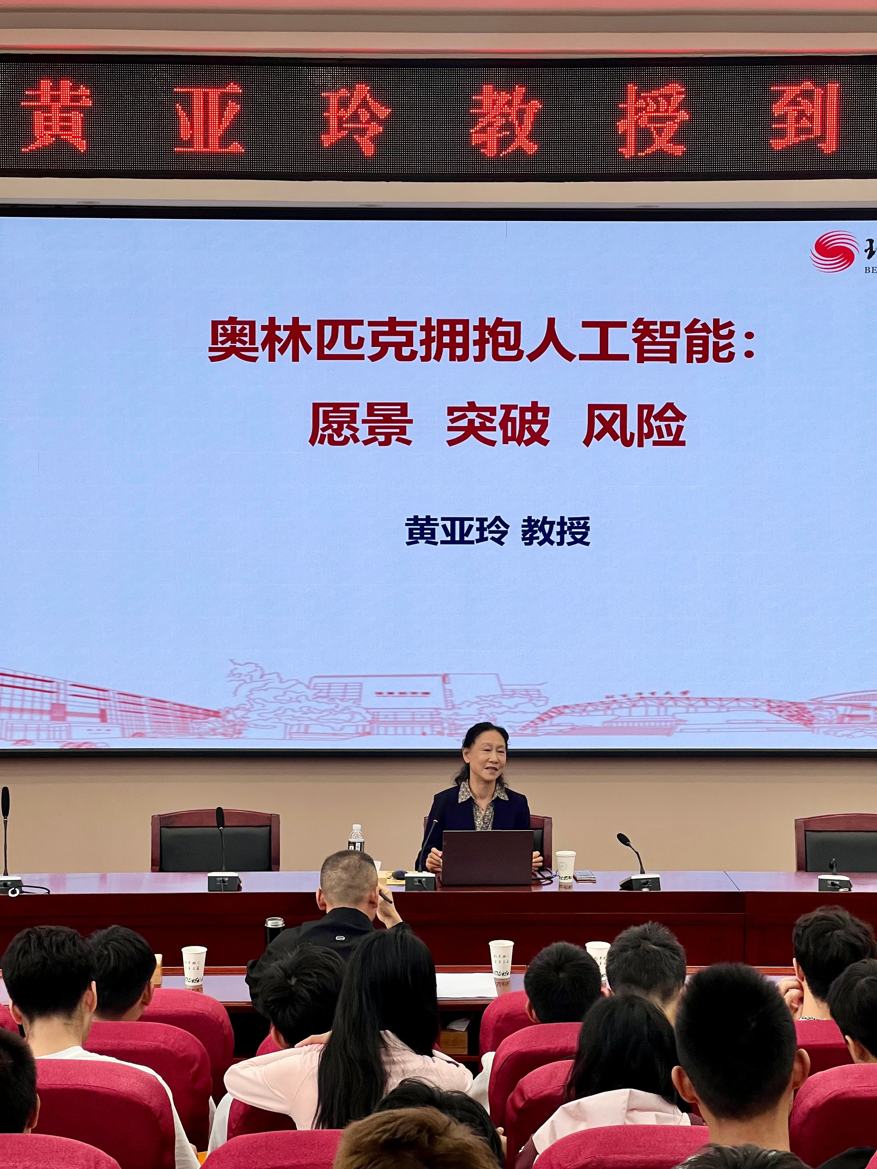 上午,黄亚玲教授作《奥林匹克拥抱人工智能:愿景 突破 风险》专题报告,报告由学院党委书记王坦主持,学院师生聆听了讲座。黄亚玲教授在介绍国际奥委会出台人工智能议程的背景下,从“奥林匹克拥抱人工智能的愿景、突破与风险”三个方面作了全面的讲解。讲座内容前沿、精彩生动,与会师生表示讲座开阔了新视野、获得了新认知。
