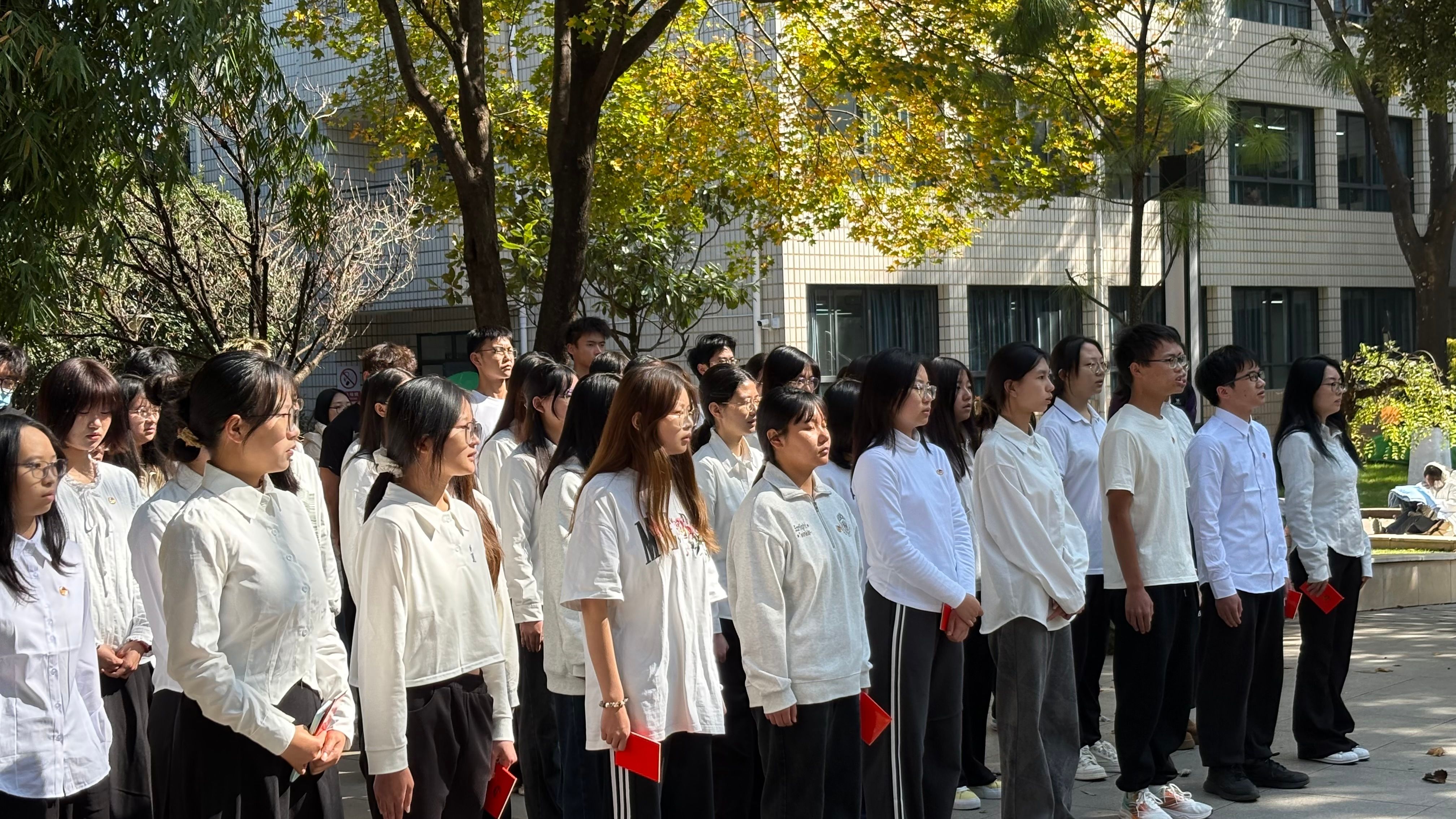 为强化新团员的身份认同与责任担当,凝聚青春合力,12月11日,体育学院、林学院、水土保持学院在校歌园联合开展2025年新发展团员集中入团仪式。三家学院团委书记艾陟邦、张国胜、杜春阳、2025年新发展团员及优秀团员代表共六十余人参加,共同见证这一庄严时刻。