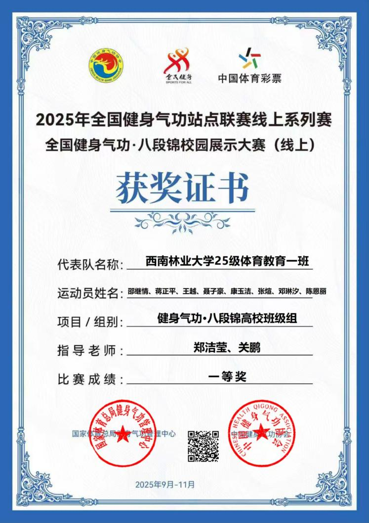 我院学子获全国健身气功·八段锦校园展示大赛(线上)一等奖